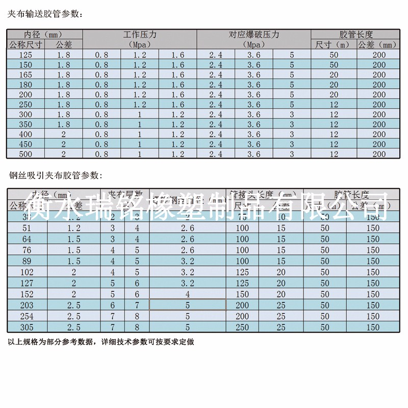 三、用途:各类型夹布钢丝输送(或吸引)胶管是根据输送介质不同,选用相应材料制 造,产品结构设计合理。
