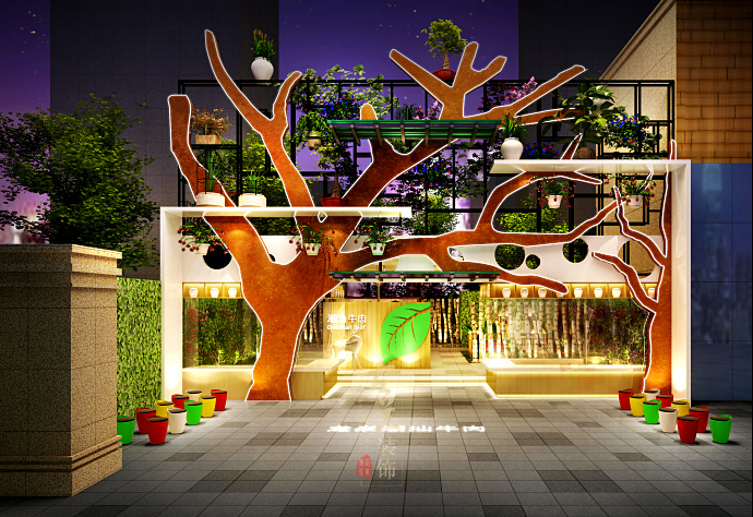 设计说明:本项目为两个业态,一个业主,由于面积过大,客户想做两个业态。一个是以汽车元素为主题的烤鱼餐吧,一个是以户外花园主题的户外潮汕牛肉餐厅。汽车烤鱼餐厅借用了汽车头,车轮,跑道等元素打造,风格为当下非常受年轻人喜爱的工业风格。潮汕牛肉花园餐厅,主要是借用了得天独厚的户外优势,打造了一个吃牛肉的秘密花园,既是餐厅,也是花园,百花丛中饮酒醉,是何等潇洒惬意。