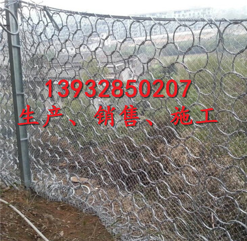 被动拦石网作用原理上类似于喷锚和土钉墙等面层护坡体系,但因其柔性特征能使系统将局部集中荷载向四周均匀传递以充分发挥整个系统的防护能力,即局部受载,整体作用,从而使系统能承受较大的荷载并降低单根锚杆的锚固力要求 。 柔性防护网可分为:主动防护网和被动防护网两种。被动拦石网材质: 1.钢丝绳网、普通钢丝格栅(常称铁丝格栅)和TECCO高强度钢丝格栅。 2.钢丝绳网、支撑绳和减压环。 柔性防护网结构: 由钢丝绳网或环形网(需拦截小块落石时附加一层铁丝格栅)、固定系统(锚杆、拦锚绳、基座和支撑绳)、减压环和钢柱四个主要部分构成。 柔性防护网特点: 1.具有高柔性,高防护强度,易铺展性。适应任何坡面地形,安装程序标准化、系统化。 2.系统采用模切化安装方式,工期短,施工费用低。 3.系统材料的特殊制造工艺和高防腐防锈技术,决定了系统的超高寿命。 4.被动拦石网能将工程队环境的影响降到***低点,其防护区域可以充分的保护土体、岩石的稳固,便于人工绿化,有利于环保。