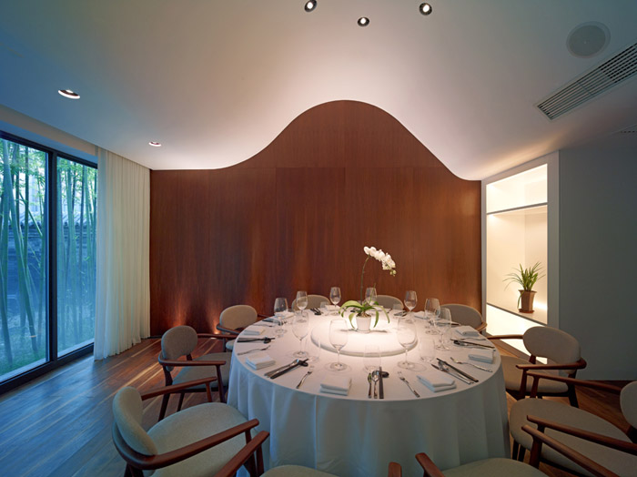 景观:我们对传统园林是抱批判态度的,认为其设计偏于繁琐。我们的景观设计中把传统的庭院内的元素简化成几个色块和质感,如暗红色的木框架、灰色的砖铺地,灰白相间的石子,就是说我们希望把古代景观中的琐碎去除,同时把其精华质量调动出来。