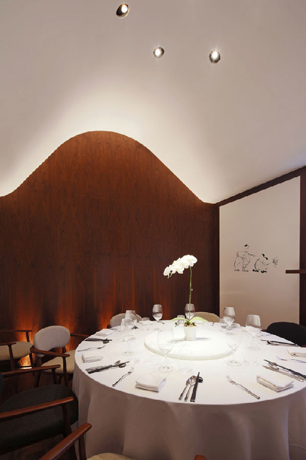 空间设计:我们尊重四合院建筑的核心元素 – 院。尽管原有的一个院子需要封起来,我们希望仍然保持两个院子的感觉,因此将封闭的院子做得尽量通透、明亮,用一个悬挂的八面屏营造既开敞又亲密的尺度。其结果形成一个室外一个室内的两个院子空间的对比。其它空间都围绕院子展开。