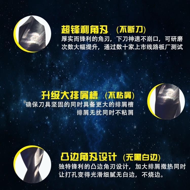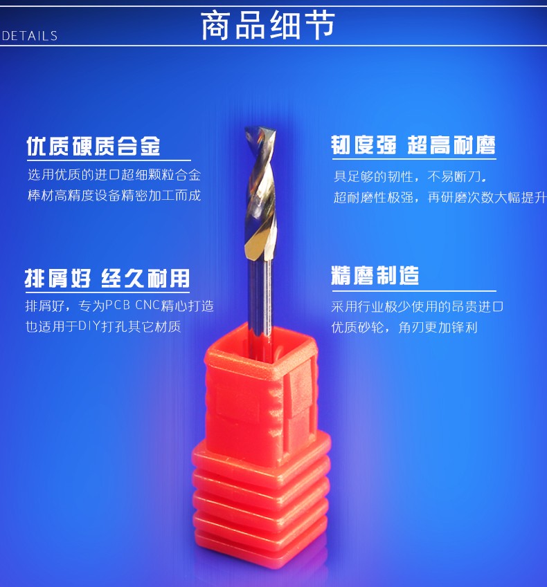 钻锋刀具主要包括:钻咀、锣刀、槽刀、铝基板铣刀、沉头钻等系列。钻锋刀具是世美盛为迎合***市场,经过大数据精心研究开发的拳头产品。