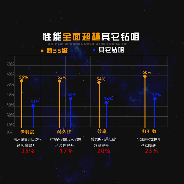 ③基于客户应用的刀具设计:钻头品种丰富,可满足不同的应用需求。钻头所有参数,如钻芯厚,钻芯锥度等,皆经精心设计,实效明显;