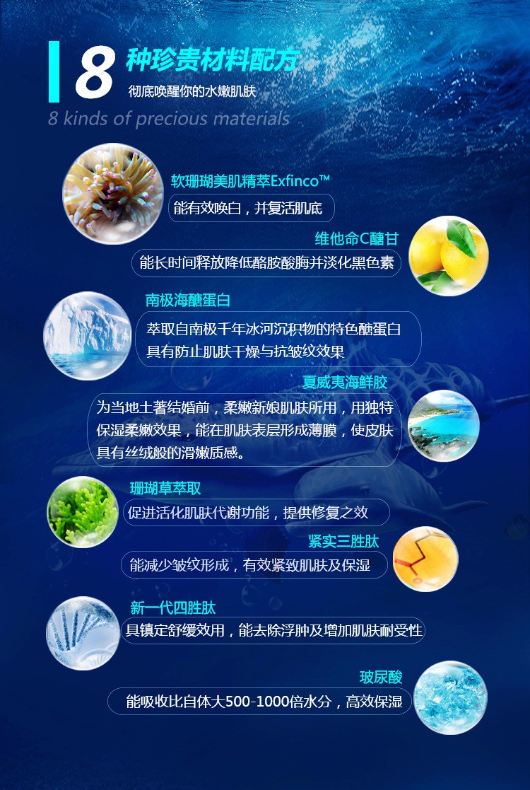 始于海洋 成就女性之美 改善斑点 提亮肤色 嫩滑紧致 紧致补水 触感柔滑