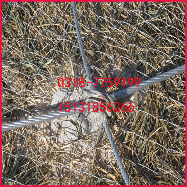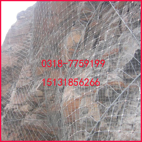 山体柔性护坡主动防护网材料:采用?8的钢丝绳(抗拉强度为1770Mpa,破断拉力>40KN)编制并在结点处用专用“十字扣”固定而成,为防护网的主要特征构件之一,在主动防护中通过钢丝绳网的覆盖来实现边坡的加固,其开放特征可以实现对坡面***植被和植被生长条件的很好保护,实现环境保护与灾害治理的有机结合;在被动防护系统中,其柔性特征充分体现了“以柔克刚”的思想,实现崩塌落石的有效拦截。